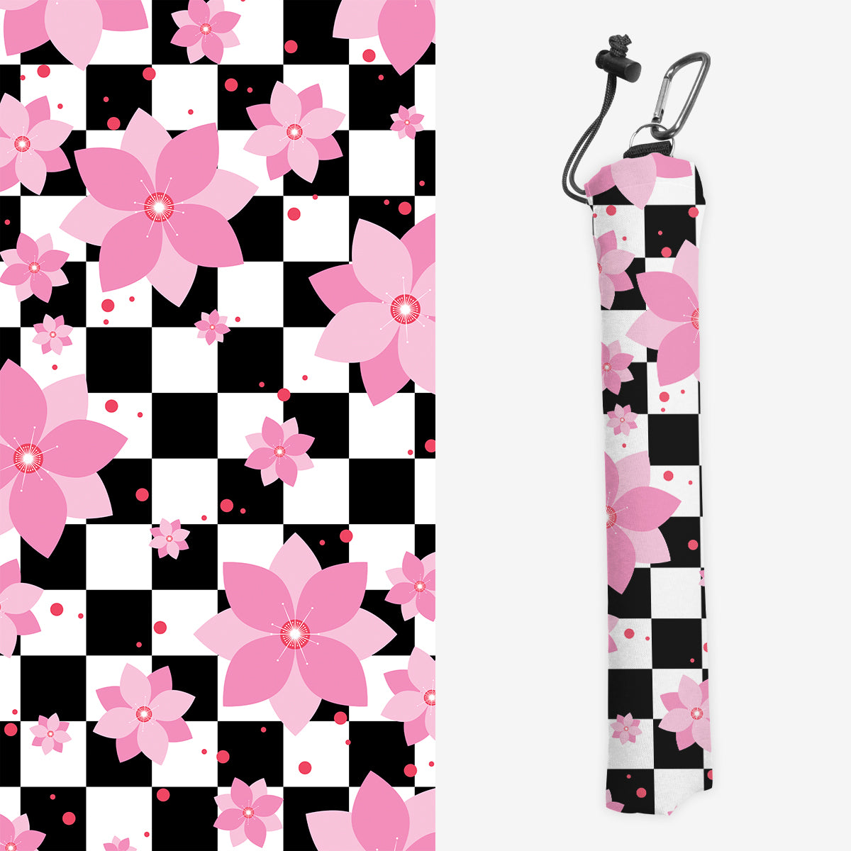 Playmat Bags are specifically designed to hold your mats in style. They are large enough to carry up to two mats. They are coated to be water resistant and include a strap with carabiner for carrying on your backpack. Our bags are hand made in house, and to order. A design that is vertical or patterned would be best for this type of product.