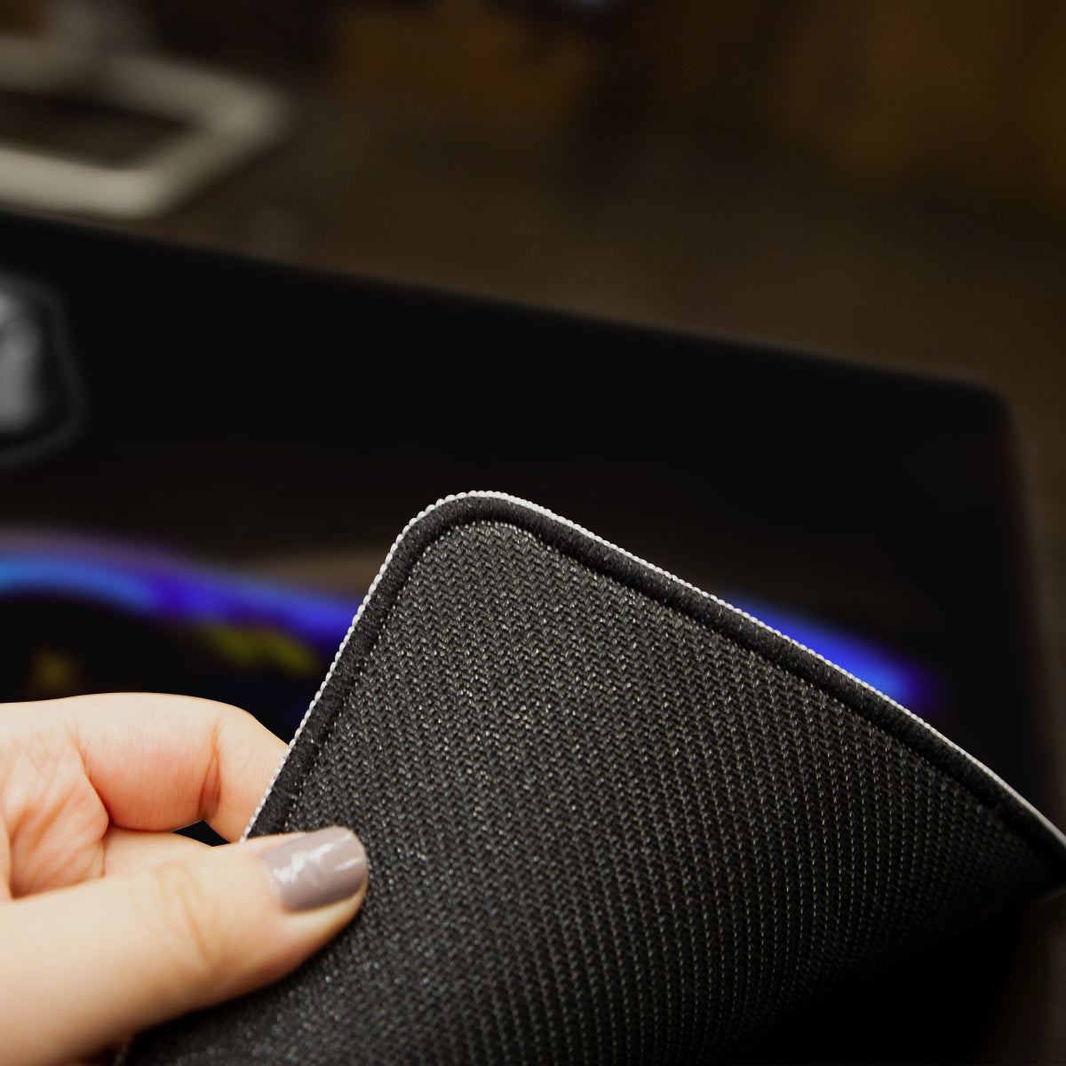 Need a new mousepad that features quality craftsmanship and creativity? Then you’ve definitely come to the right place. Our mousepads are made in-house with premium materials and unique artwork that give your battlestation the supreme look and feel that it deserves. The top is made from sleek polyester, which enables faster, more precise mouse movements. This enhanced speed and precision come in handy whether you’re working or gaming. On the bottom, there’s a strong anti-slip rubber backing that holds a nice, tight grip on your desk while you’re doing your thing. The action and traction this pad provides give you a better overall experience in completing daily tasks, deadlines, and missions of all kinds. And because we’ve added more sizing options to it, you no longer have to worry about running out of room at the worst moments either. The sizes are Classic, Large, and XL. The Classic mousepad has unstitched edges. However, the Large mousepad does include stitched edging, while the XL mousepad has both a stitched or unstitched edging option available. You can see the approximate measurements of all those sizes in the details below. We think you’ll be impressed…if you aren’t already!
