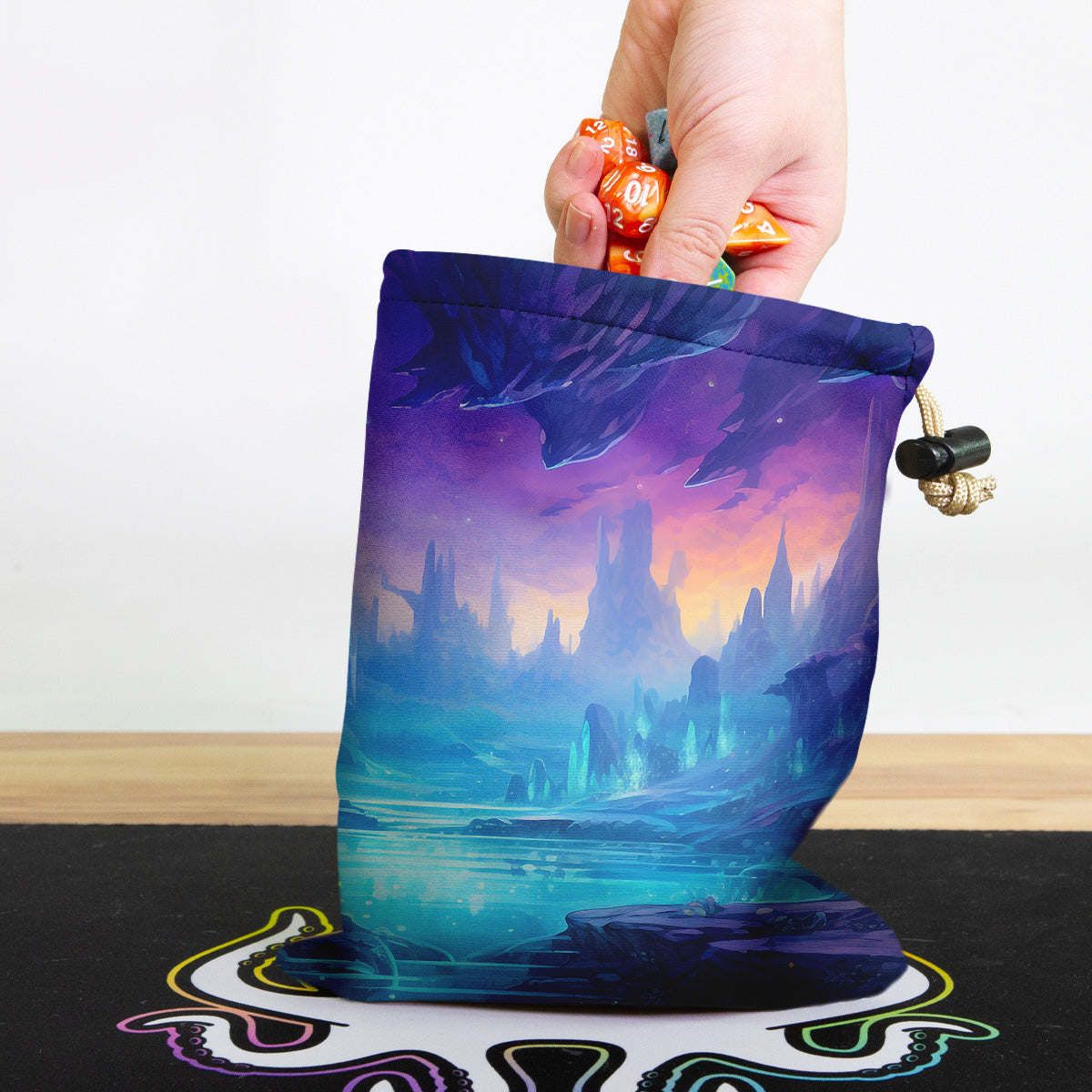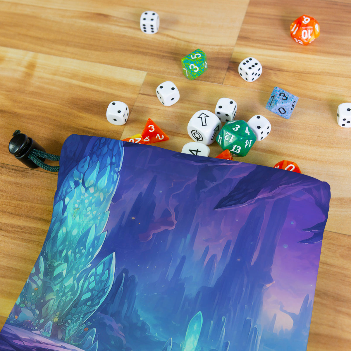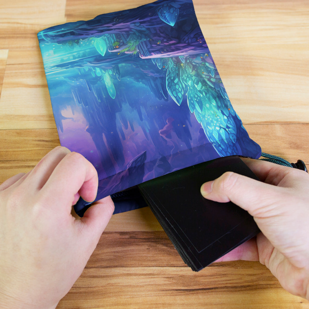 Natural Nexus DesignsAlways gaming on the go? Carry everything you need and more using our specially crafted dice bag. But this bag is designed to hold more than just dice. We make it so you can carry other essential accessories and gear with your dice, including deck boxes, life counters, extra sleeves, and pens. Quality is just as important as quantity, which is why our dice bags are crafted using premium material as well. Featuring a soft inner lining and microfiber on the inside and vibrant pre-designed artwork on the outside, our dice bag has an amazing look and feel to it!