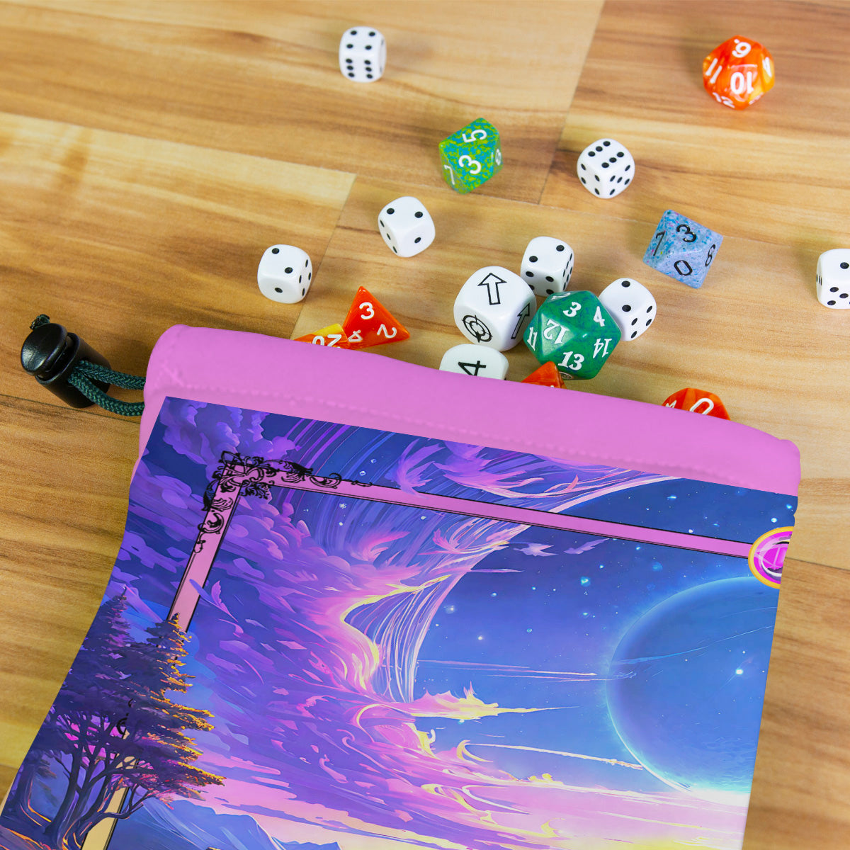 Rogue WizardAlways gaming on the go? Carry everything you need and more using our specially crafted dice bag. But this bag is designed to hold more than just dice. We make it so you can carry other essential accessories and gear with your dice, including deck boxes, life counters, extra sleeves, and pens. Quality is just as important as quantity, which is why our dice bags are crafted using premium material as well. Featuring a soft inner lining and microfiber on the inside and vibrant pre-designed artwork on the outside, our dice bag has an amazing look and feel to it!