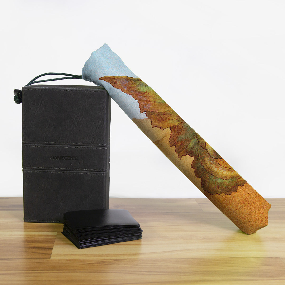 Keep your playmat in pristine condition wherever you go with one of our handcrafted playmat bags. This playmat bag is specifically designed to protect your playmat and can hold two standard sized mats at the same time (in case you need a backup or your friend forgets theirs). Each bag is made in-house and features a water-resistant coating along with a drawstring and carabiner clip for secure carrying. So you can take your game anywhere and in any weather.