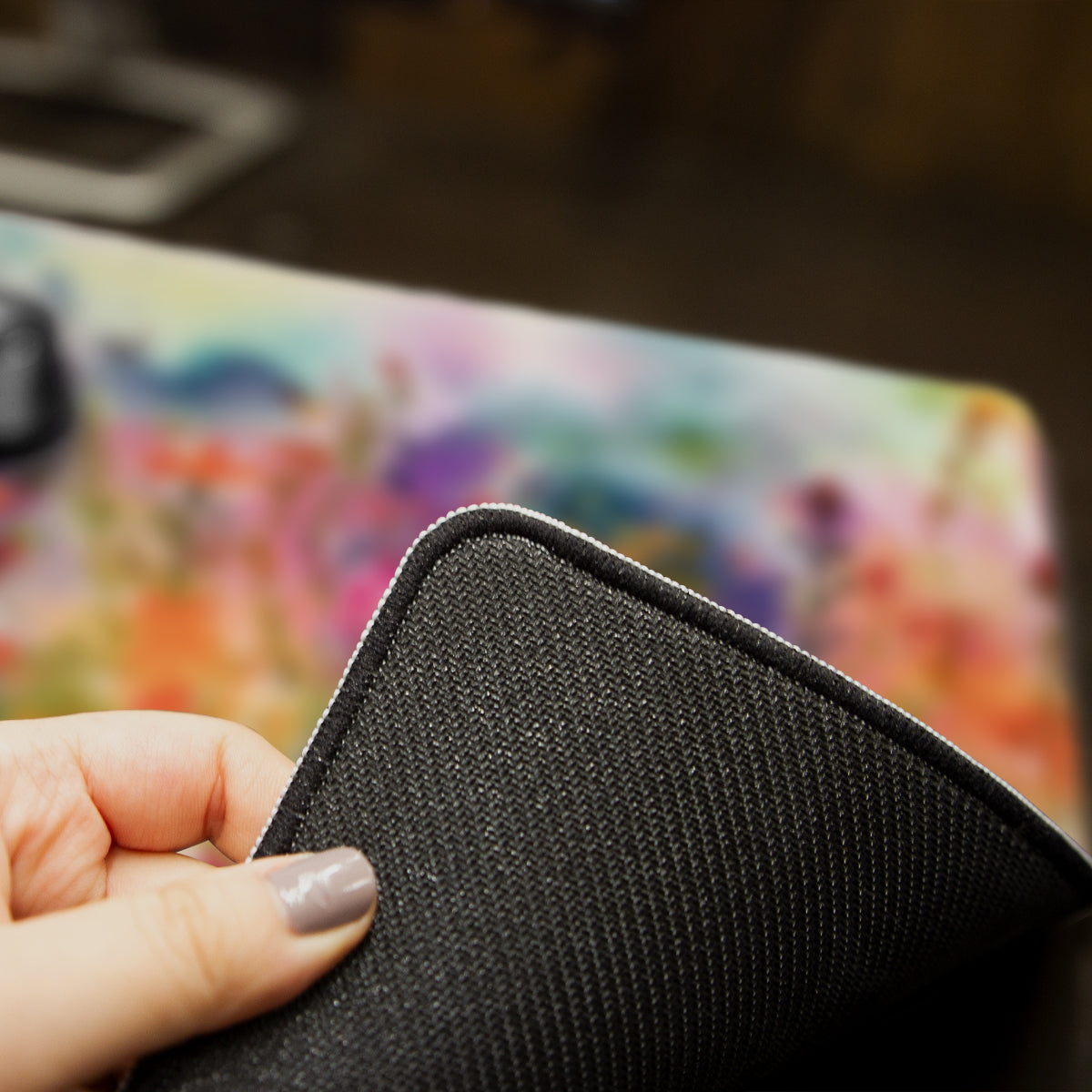 Need a new mousepad that features quality craftsmanship and creativity? Then you’ve definitely come to the right place. Our mousepads are made in-house with premium materials and unique artwork that give your battlestation the supreme look and feel that it deserves. The top is made from sleek polyester, which enables faster, more precise mouse movements. This enhanced speed and precision come in handy whether you’re working or gaming. On the bottom, there’s a strong anti-slip rubber backing that holds a nice, tight grip on your desk while you’re doing your thing. The action and traction this pad provides give you a better overall experience in completing daily tasks, deadlines, and missions of all kinds. And because we’ve added more sizing options to it, you no longer have to worry about running out of room at the worst moments either. The sizes are Classic, Large, and XL. The Classic mousepad has unstitched edges. However, the Large mousepad does include stitched edging, while the XL mousepad has both a stitched or unstitched edging option available. You can see the approximate measurements of all those sizes in the details below. We think you’ll be impressed…if you aren’t already!