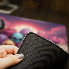 Need a new mousepad that features quality craftsmanship and creativity? Then you’ve definitely come to the right place. Our mousepads are made in-house with premium materials and unique artwork that give your battlestation the supreme look and feel that it deserves. The top is made from sleek polyester, which enables faster, more precise mouse movements. This enhanced speed and precision come in handy whether you’re working or gaming. On the bottom, there’s a strong anti-slip rubber backing that holds a nice, tight grip on your desk while you’re doing your thing. The action and traction this pad provides give you a better overall experience in completing daily tasks, deadlines, and missions of all kinds. And because we’ve added more sizing options to it, you no longer have to worry about running out of room at the worst moments either. The sizes are Classic, Large, and XL. The Classic mousepad has unstitched edges. However, the Large mousepad does include stitched edging, while the XL mousepad has both a stitched or unstitched edging option available. You can see the approximate measurements of all those sizes in the details below. We think you’ll be impressed…if you aren’t already!