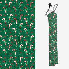 Playmat Bags are specifically designed to hold your mats in style. They are large enough to carry up to two mats. They are coated to be water resistant and include a strap with carabiner for carrying on your backpack. Our bags are hand made in house, and to order. A design that is vertical or patterned would be best for this type of product.