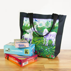 Keep your playmat in pristine condition wherever you go with one of our handcrafted playmat bags. This playmat bag is specifically designed to protect your playmat and can hold two standard sized mats at the same time (in case you need a backup or your friend forgets theirs). Each bag is made in-house and features a water-resistant coating along with a drawstring and carabiner clip for secure carrying. So you can take your game anywhere and in any weather.