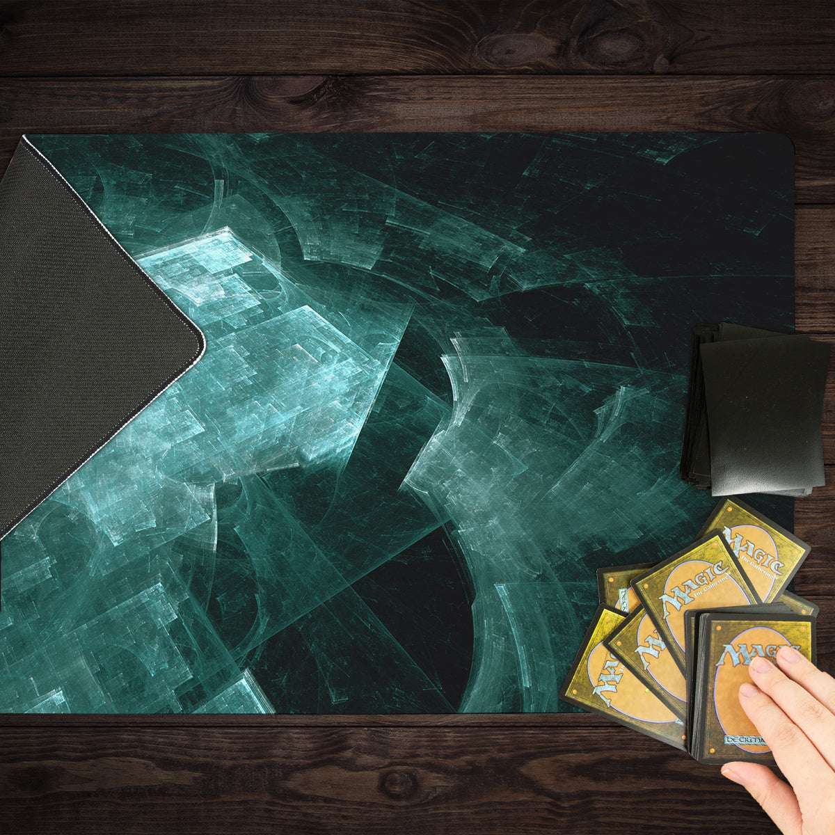 Standard Playmat measures at 24” x 14” inches and is 1/16 of an inch thick. It’s made with a smooth cloth top and strong rubber backing.