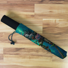 Keep your playmat in pristine condition wherever you go with one of our handcrafted playmat bags. This playmat bag is specifically designed to protect your playmat and can hold two standard sized mats at the same time (in case you need a backup or your friend forgets theirs). Each bag is made in-house and features a water-resistant coating along with a drawstring and carabiner clip for secure carrying. So you can take your game anywhere and in any weather.