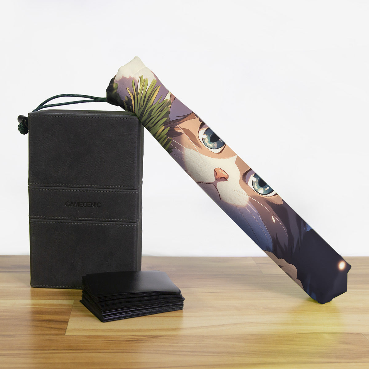 Keep your playmat in pristine condition wherever you go with one of our handcrafted playmat bags. This playmat bag is specifically designed to protect your playmat and can hold two standard sized mats at the same time (in case you need a backup or your friend forgets theirs). Each bag is made in-house and features a water-resistant coating along with a drawstring and carabiner clip for secure carrying. So you can take your game anywhere and in any weather.
