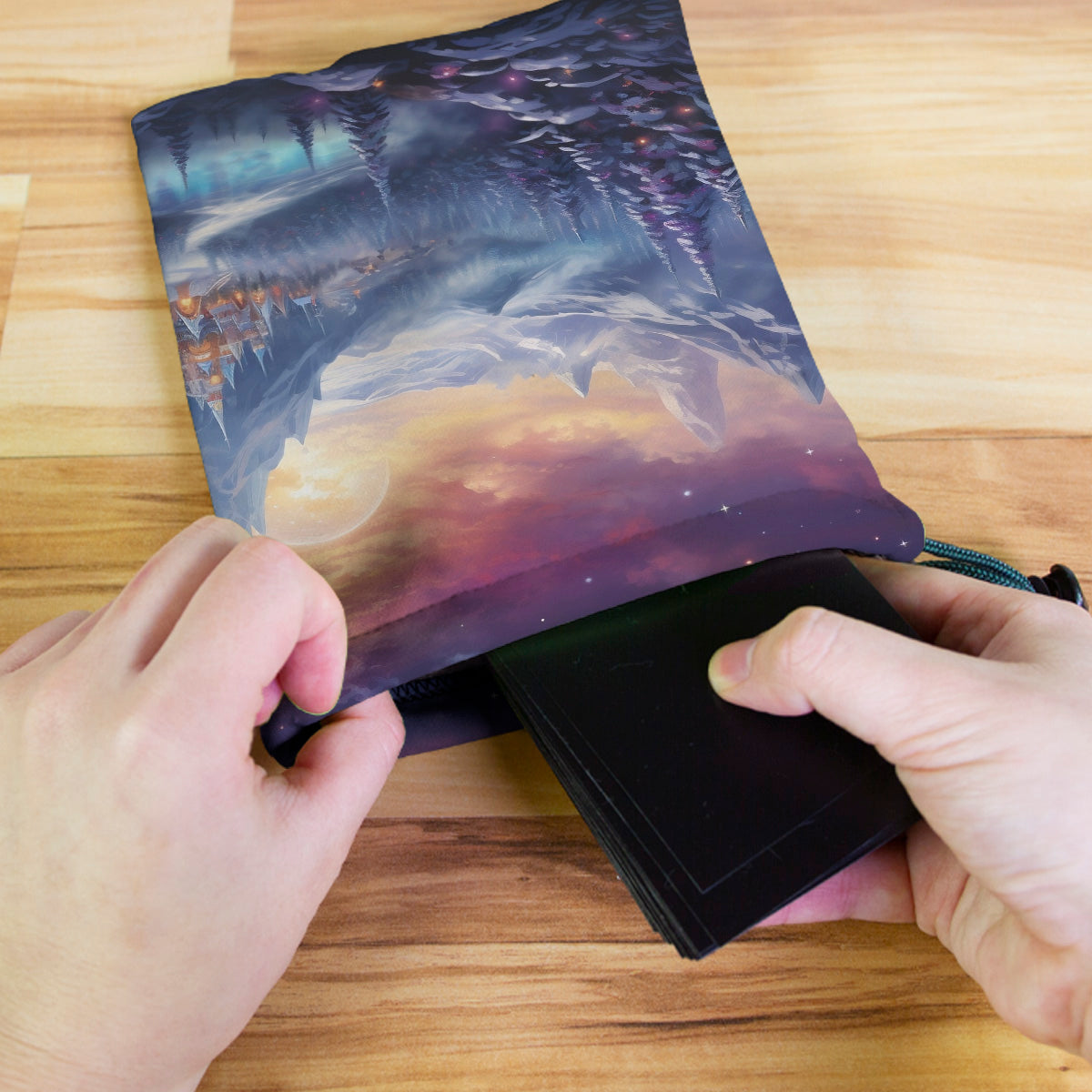 Always gaming on the go? Carry everything you need and more using our specially crafted dice bag. But this bag is designed to hold more than just dice. We make it so you can carry other essential accessories and gear with your dice, including deck boxes, life counters, extra sleeves, and pens. Quality is just as important as quantity, which is why our dice bags are crafted using premium material as well. Featuring a soft inner lining and microfiber on the inside and vibrant pre-designed artwork on the outside, our dice bag has an amazing look and feel to it!