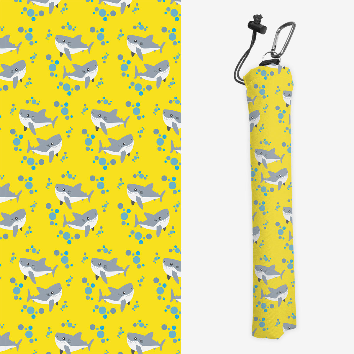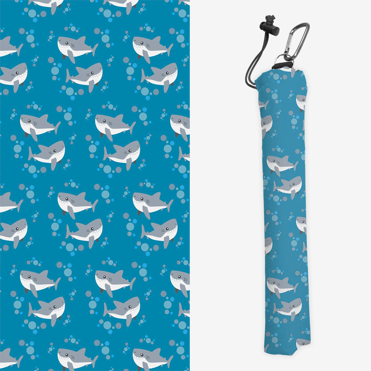 Playmat Bags are specifically designed to hold your mats in style. They are large enough to carry up to two mats. They are coated to be water resistant and include a strap with carabiner for carrying on your backpack. Our bags are hand made in house, and to order. A design that is vertical or patterned would be best for this type of product.