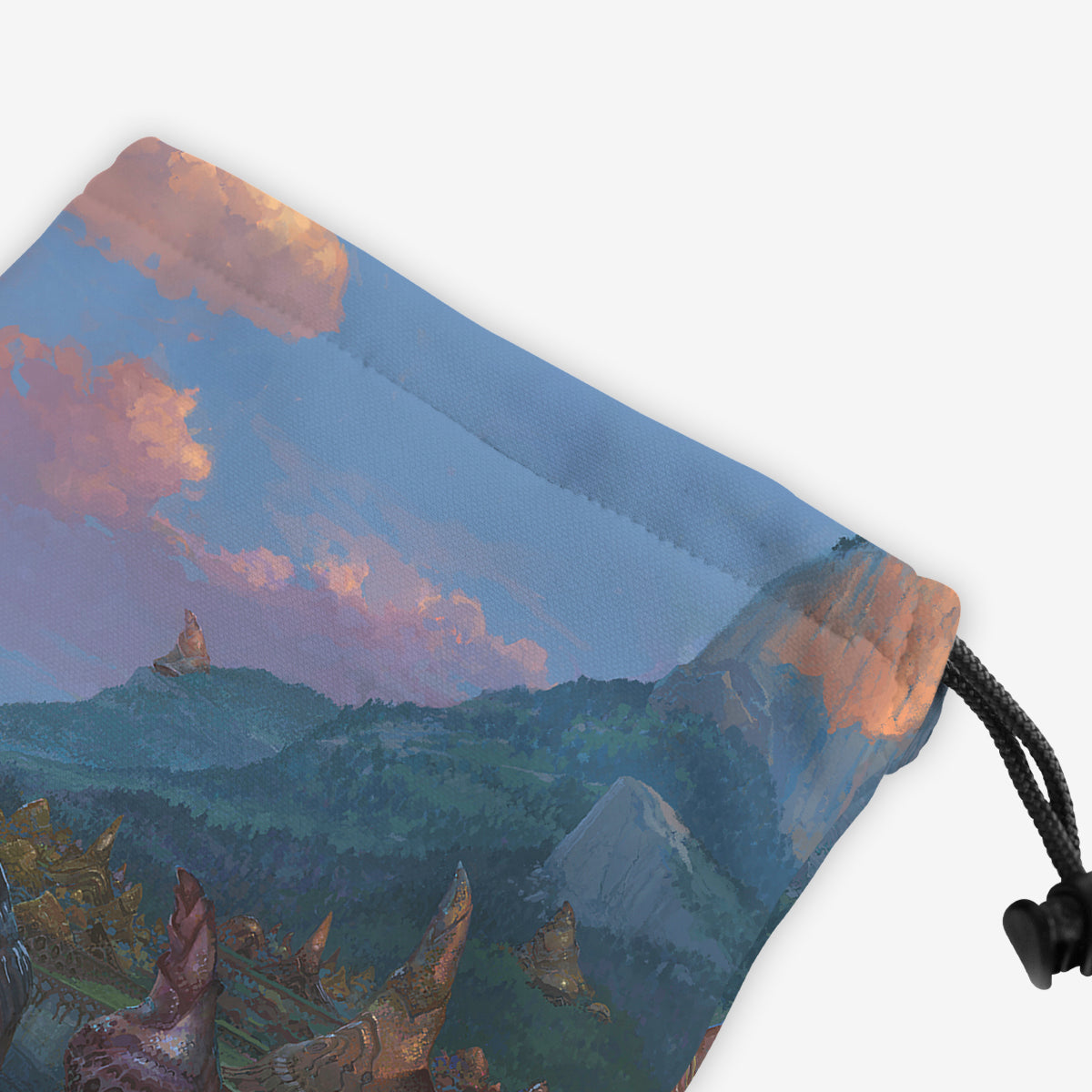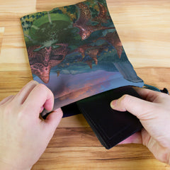 Always gaming on the go? Carry everything you need and more using our specially crafted dice bag. But this bag is designed to hold more than just dice. We make it so you can carry other essential accessories and gear with your dice, including deck boxes, life counters, extra sleeves, and pens. Quality is just as important as quantity, which is why our dice bags are crafted using premium material as well. Featuring a soft inner lining and microfiber on the inside and vibrant pre-designed artwork on the outside, our dice bag has an amazing look and feel to it!
