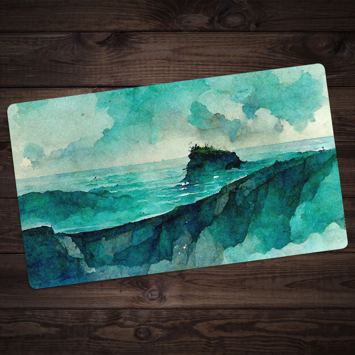 Standard Playmat measures at 24” x 14” inches and is 1/16 of an inch thick. It’s made with a smooth cloth top and strong rubber backing.