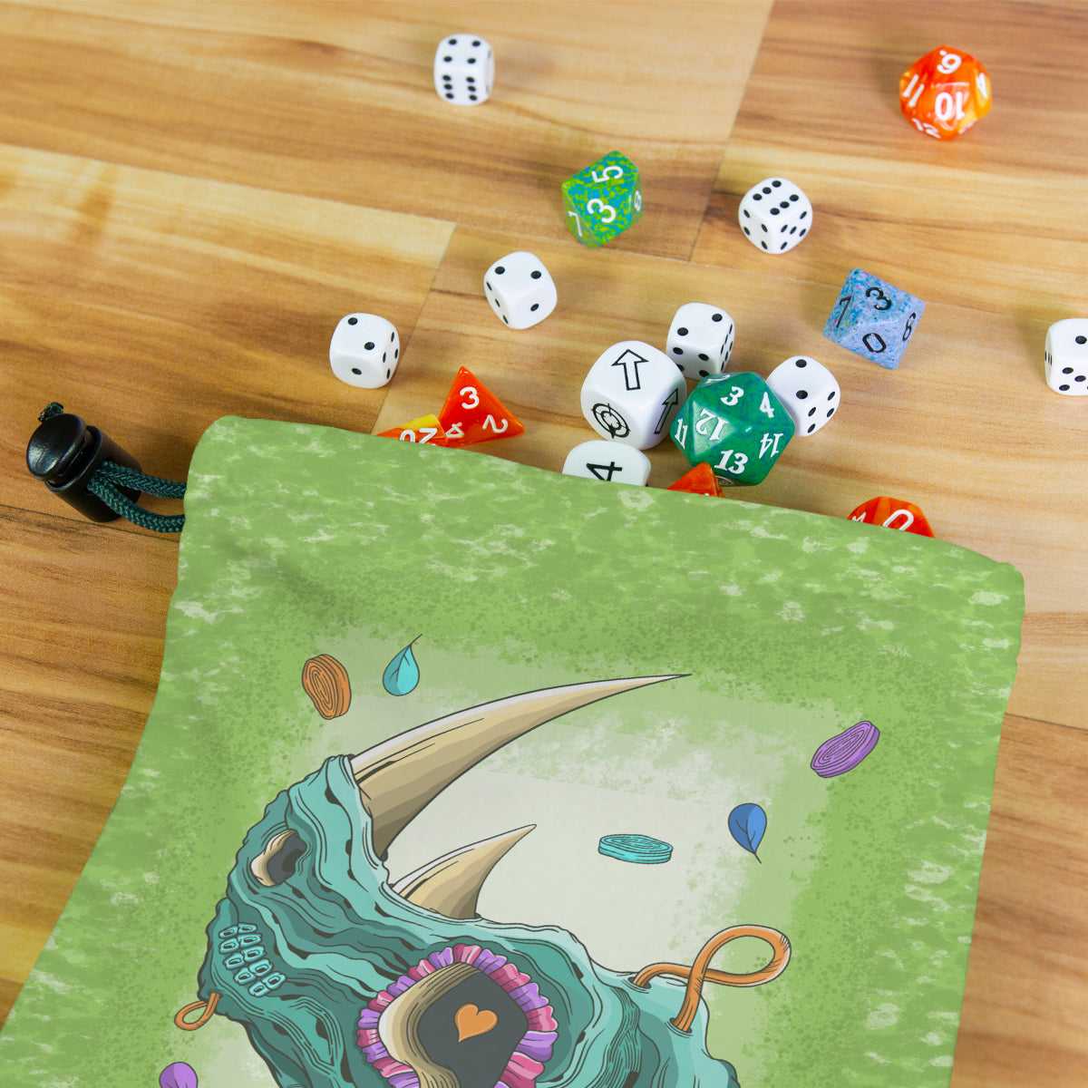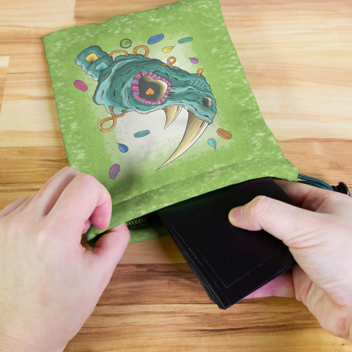 Always gaming on the go? Carry everything you need and more using our specially crafted dice bag. But this bag is designed to hold more than just dice. We make it so you can carry other essential accessories and gear with your dice, including deck boxes, life counters, extra sleeves, and pens. Quality is just as important as quantity, which is why our dice bags are crafted using premium material as well. Featuring a soft inner lining and microfiber on the inside and vibrant pre-designed artwork on the outside, our dice bag has an amazing look and feel to it!