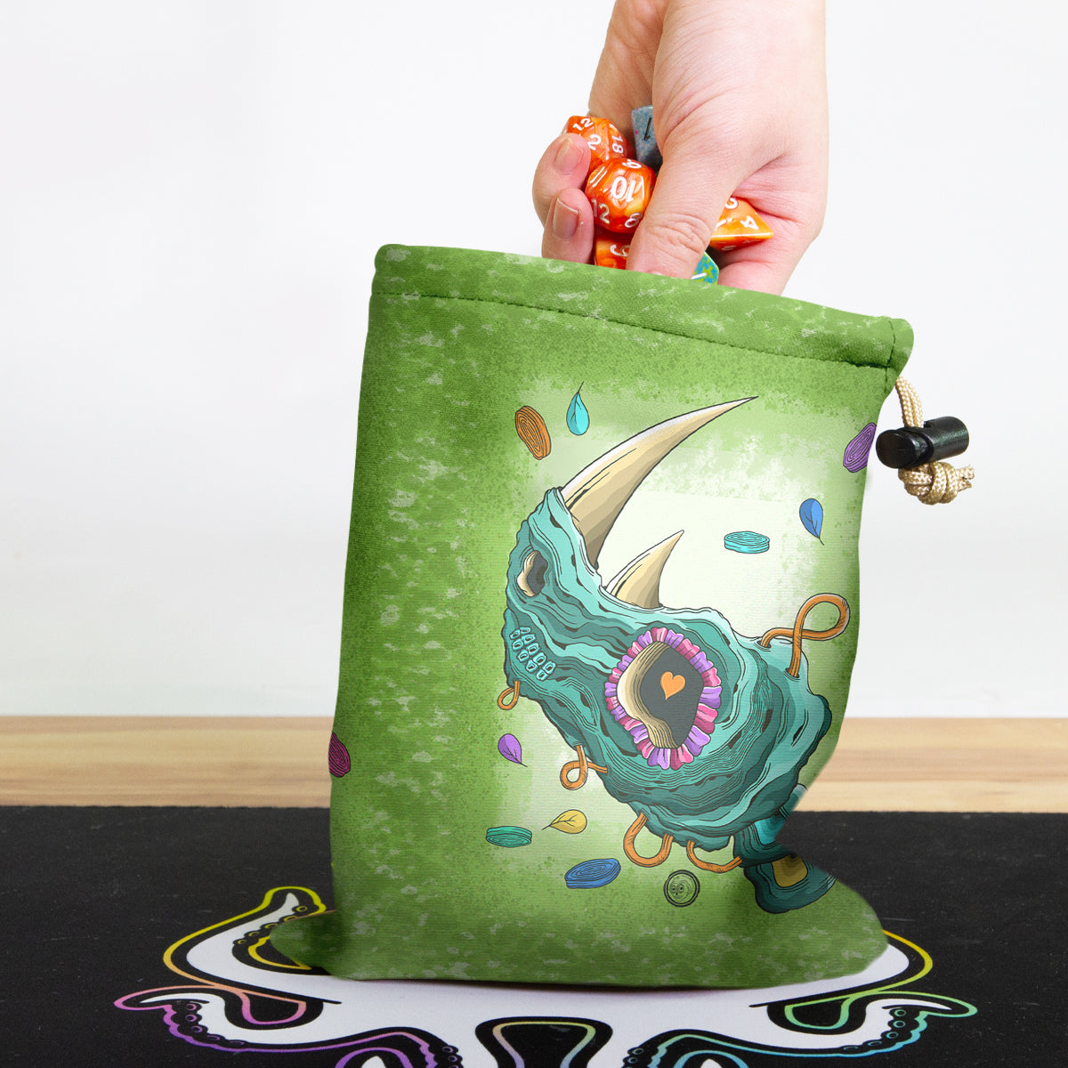BluCraniumAlways gaming on the go? Carry everything you need and more using our specially crafted dice bag. But this bag is designed to hold more than just dice. We make it so you can carry other essential accessories and gear with your dice, including deck boxes, life counters, extra sleeves, and pens. Quality is just as important as quantity, which is why our dice bags are crafted using premium material as well. Featuring a soft inner lining and microfiber on the inside and vibrant pre-designed artwork on the outside, our dice bag has an amazing look and feel to it!