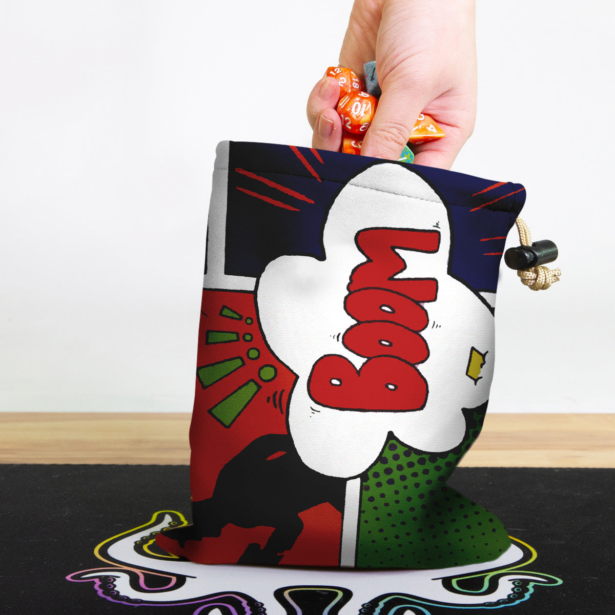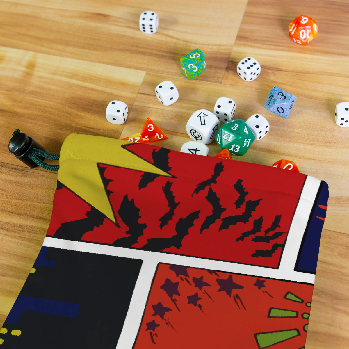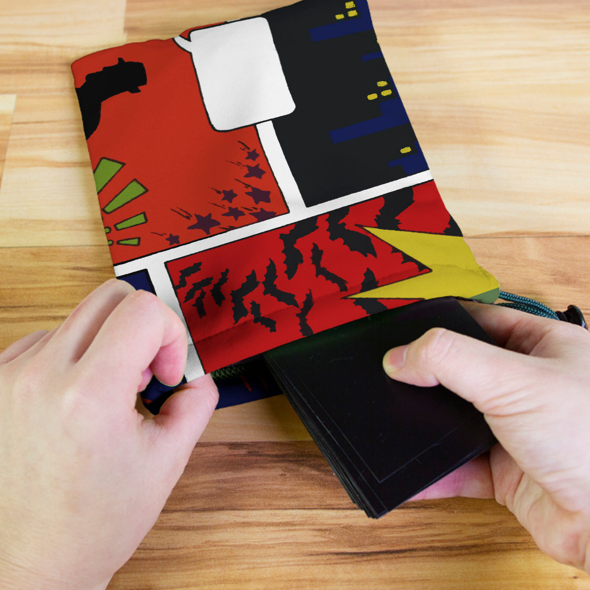 Always gaming on the go? Carry everything you need and more using our specially crafted dice bag. But this bag is designed to hold more than just dice. We make it so you can carry other essential accessories and gear with your dice, including deck boxes, life counters, extra sleeves, and pens. Quality is just as important as quantity, which is why our dice bags are crafted using premium material as well. Featuring a soft inner lining and microfiber on the inside and vibrant pre-designed artwork on the outside, our dice bag has an amazing look and feel to it!