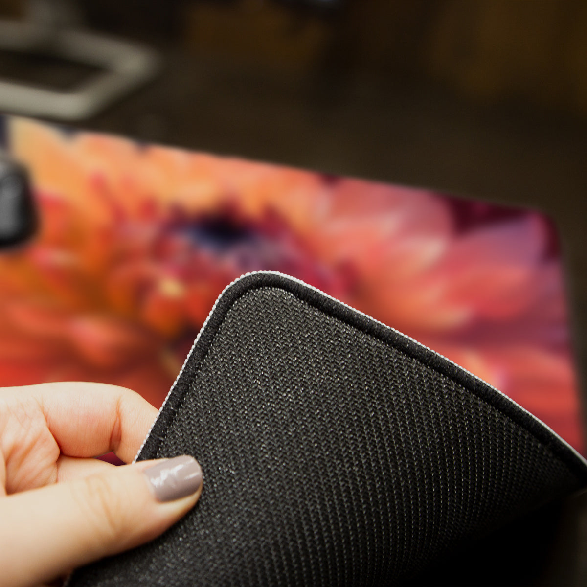 Need a new mousepad that features quality craftsmanship and creativity? Then you’ve definitely come to the right place. Our mousepads are made in-house with premium materials and unique artwork that give your battlestation the supreme look and feel that it deserves. The top is made from sleek polyester, which enables faster, more precise mouse movements. This enhanced speed and precision come in handy whether you’re working or gaming. On the bottom, there’s a strong anti-slip rubber backing that holds a nice, tight grip on your desk while you’re doing your thing. The action and traction this pad provides give you a better overall experience in completing daily tasks, deadlines, and missions of all kinds. And because we’ve added more sizing options to it, you no longer have to worry about running out of room at the worst moments either. The sizes are Classic, Large, and XL. The Classic mousepad has unstitched edges. However, the Large mousepad does include stitched edging, while the XL mousepad has both a stitched or unstitched edging option available. You can see the approximate measurements of all those sizes in the details below. We think you’ll be impressed…if you aren’t already!