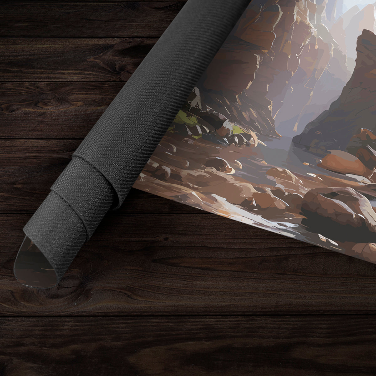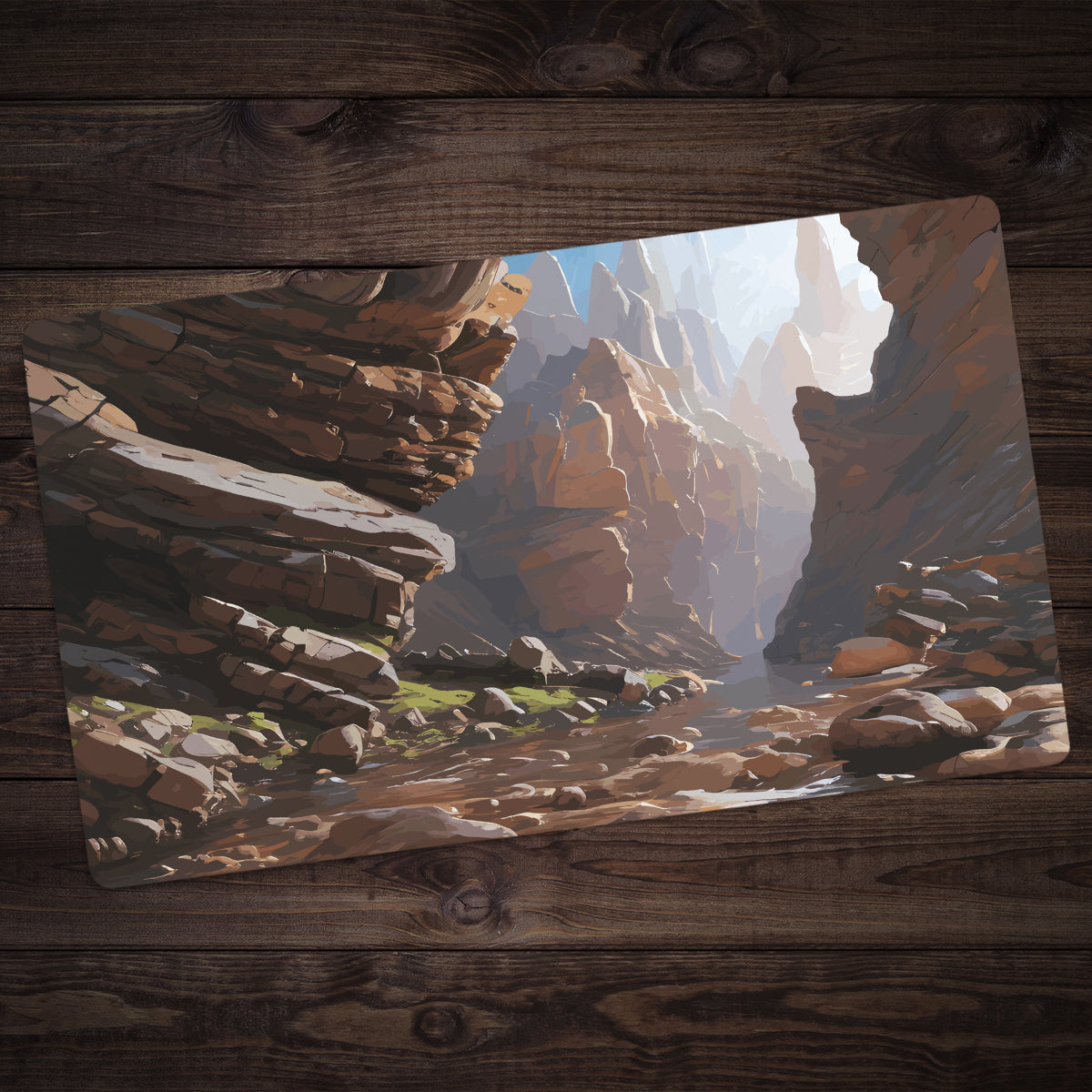 Standard Playmat measures at 24” x 14” inches and is 1/16 of an inch thick. It’s made with a smooth cloth top and strong rubber backing.