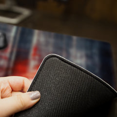 Need a new mousepad that features quality craftsmanship and creativity? Then you’ve definitely come to the right place. Our mousepads are made in-house with premium materials and unique artwork that give your battlestation the supreme look and feel that it deserves. The top is made from sleek polyester, which enables faster, more precise mouse movements. This enhanced speed and precision come in handy whether you’re working or gaming. On the bottom, there’s a strong anti-slip rubber backing that holds a nice, tight grip on your desk while you’re doing your thing. The action and traction this pad provides give you a better overall experience in completing daily tasks, deadlines, and missions of all kinds. And because we’ve added more sizing options to it, you no longer have to worry about running out of room at the worst moments either. The sizes are Classic, Large, and XL. The Classic mousepad has unstitched edges. However, the Large mousepad does include stitched edging, while the XL mousepad has both a stitched or unstitched edging option available. You can see the approximate measurements of all those sizes in the details below. We think you’ll be impressed…if you aren’t already!