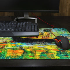 Need something new that can protect your desk and give it a hint of personality at the same time? Freshen things up a bit with a piece that’s unique and useful, like our 24” x 14” Thin Desk Mats. Just like the other mats that we make, this one is meant to give you the best work/play experience possible. And the fact that you can order it with a stunning design from an independent makes it even more special. The mat itself is crafted with premium materials that allow you to play and perform at your peak and keep your desk protected. The top features a smooth polyester that makes moving your mouse (or coffee cup) easier than ever. It also has a grippy rubber backing on the bottom, which ensures that it will remain still during the most hectic last-minute reports. As far as the artwork is concerned, all artists on our site receive a commission for any sales of their work. So every time you buy a pre-designed product from our site, you're helping to support our amazing community of independent artists!