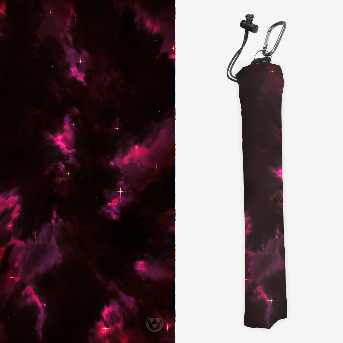 Playmat Bags are specifically designed to hold your mats in style. They are large enough to carry up to two mats. They are coated to be water resistant and include a strap with carabiner for carrying on your backpack. Our bags are hand made in house, and to order. A design that is vertical or patterned would be best for this type of product.