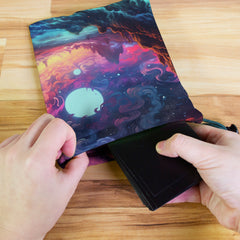Natural Nexus DesignsAlways gaming on the go? Carry everything you need and more using our specially crafted dice bag. But this bag is designed to hold more than just dice. We make it so you can carry other essential accessories and gear with your dice, including deck boxes, life counters, extra sleeves, and pens. Quality is just as important as quantity, which is why our dice bags are crafted using premium material as well. Featuring a soft inner lining and microfiber on the inside and vibrant pre-designed artwork on the outside, our dice bag has an amazing look and feel to it!