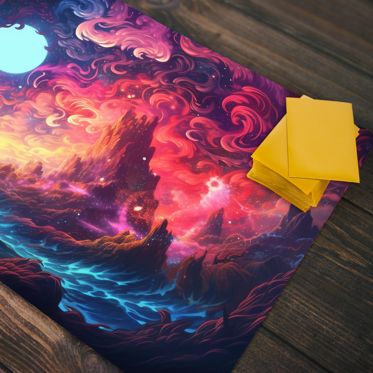 All Inked playmats are specially designed for you to play your favorite card games with style and finesse. Made with a smooth cloth top and rubber bottom, our mats allow you to pick up and move your cards with ease. That means no more sliding cards off the edges of tables or struggling to flip cards over at the most pivotal moment of battle. And with different sizing options available - Standard and Oversized - our playmats are made to fit every style of play. So, if you’re the type of player who requires a little extra elbow room, there’s a mat for that! No matter the size, these mats are ideal for keeping your precious cards and sleeves in good condition as well. When it comes to crafting the perfect playmat, quality and care is the name of the game. With a playmat like this, you’ll be hard-pressed to find anything else that comes close!