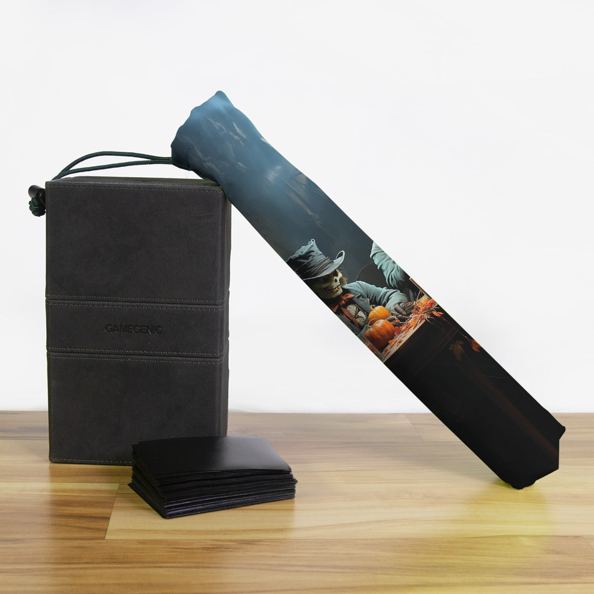 Keep your playmat in pristine condition wherever you go with one of our handcrafted playmat bags. This playmat bag is specifically designed to protect your playmat and can hold two standard sized mats at the same time (in case you need a backup or your friend forgets theirs). Each bag is made in-house and features a water-resistant coating along with a drawstring and carabiner clip for secure carrying. So you can take your game anywhere and in any weather.
