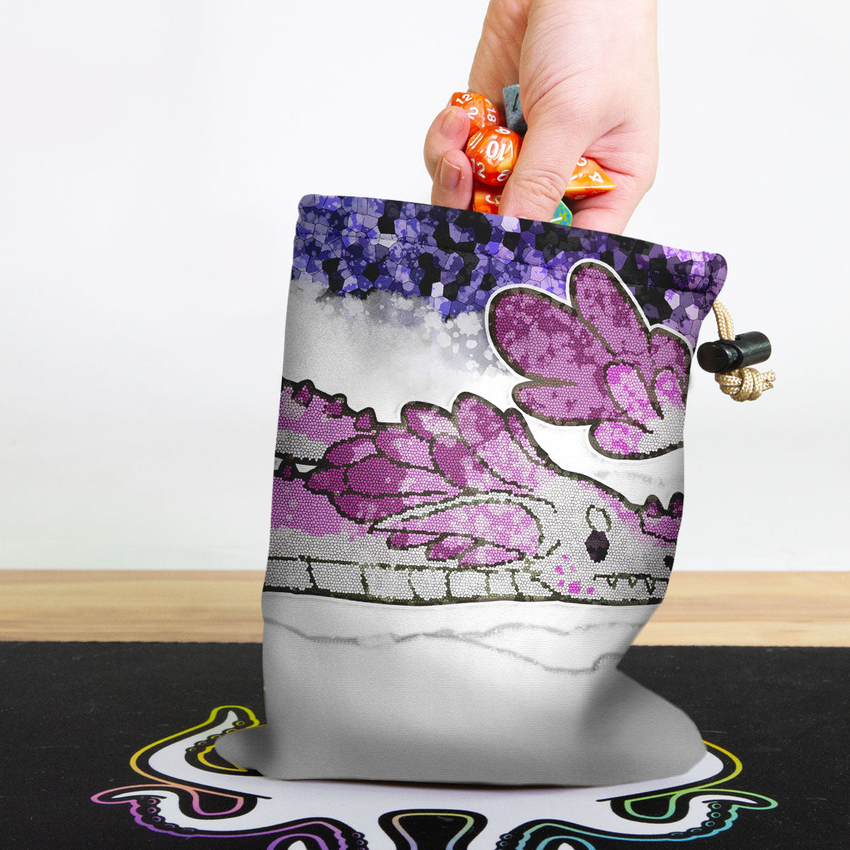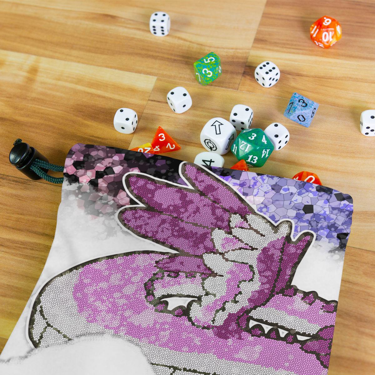 Inked Gaming - EGAlways gaming on the go? Carry everything you need and more using our specially crafted dice bag. But this bag is designed to hold more than just dice. We make it so you can carry other essential accessories and gear with your dice, including deck boxes, life counters, extra sleeves, and pens. Quality is just as important as quantity, which is why our dice bags are crafted using premium material as well. Featuring a soft inner lining and microfiber on the inside and vibrant pre-designed artwork on the outside, our dice bag has an amazing look and feel to it!