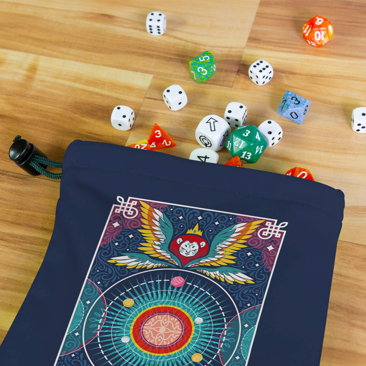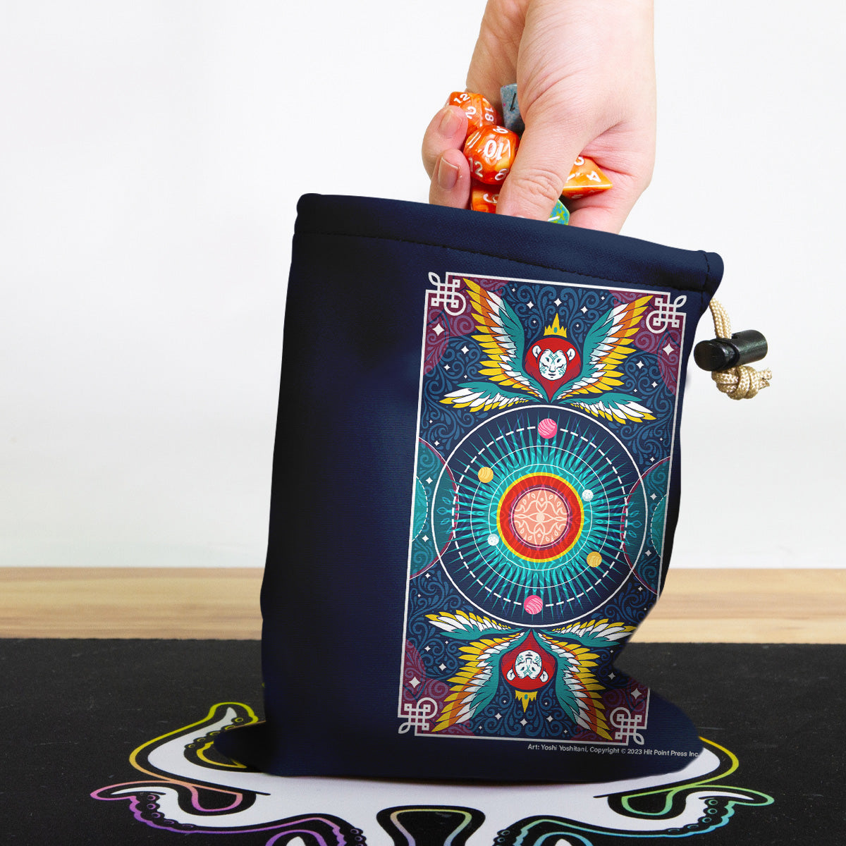 ThingamajigsAlways gaming on the go? Carry everything you need and more using our specially crafted dice bag. But this bag is designed to hold more than just dice. We make it so you can carry other essential accessories and gear with your dice, including deck boxes, life counters, extra sleeves, and pens. Quality is just as important as quantity, which is why our dice bags are crafted using premium material as well. Featuring a soft inner lining and microfiber on the inside and vibrant pre-designed artwork on the outside, our dice bag has an amazing look and feel to it!