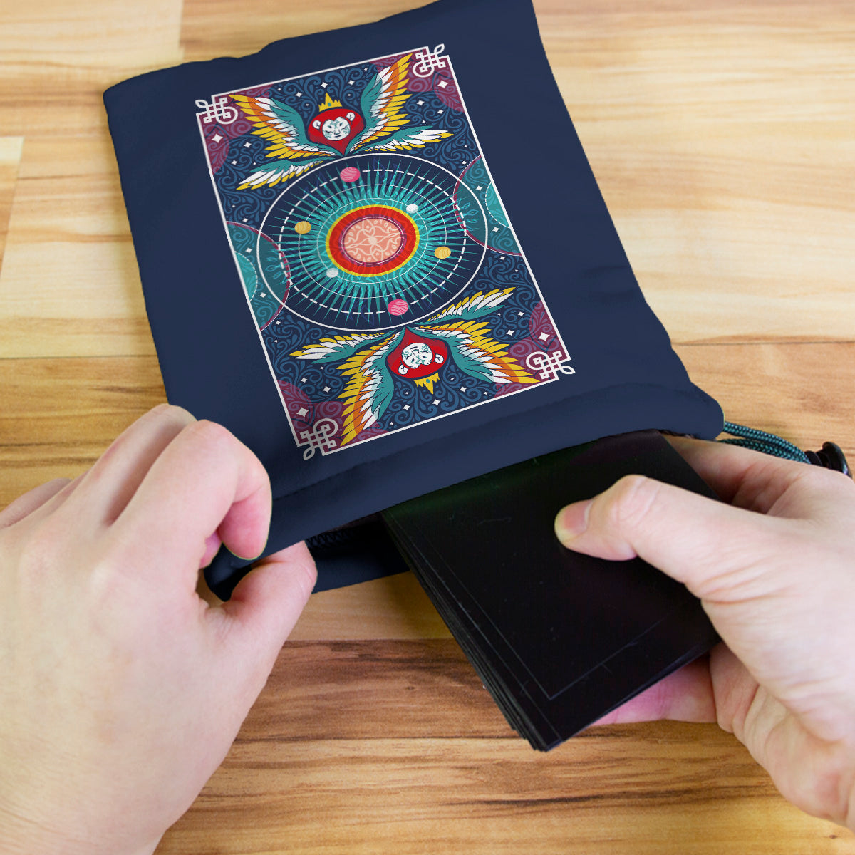 Always gaming on the go? Carry everything you need and more using our specially crafted dice bag. But this bag is designed to hold more than just dice. We make it so you can carry other essential accessories and gear with your dice, including deck boxes, life counters, extra sleeves, and pens. Quality is just as important as quantity, which is why our dice bags are crafted using premium material as well. Featuring a soft inner lining and microfiber on the inside and vibrant pre-designed artwork on the outside, our dice bag has an amazing look and feel to it!
