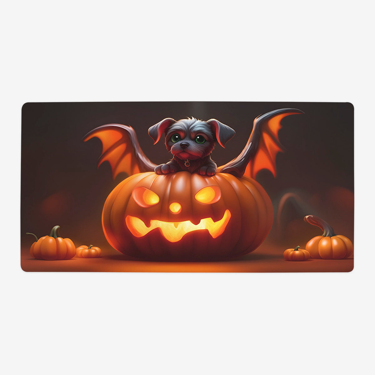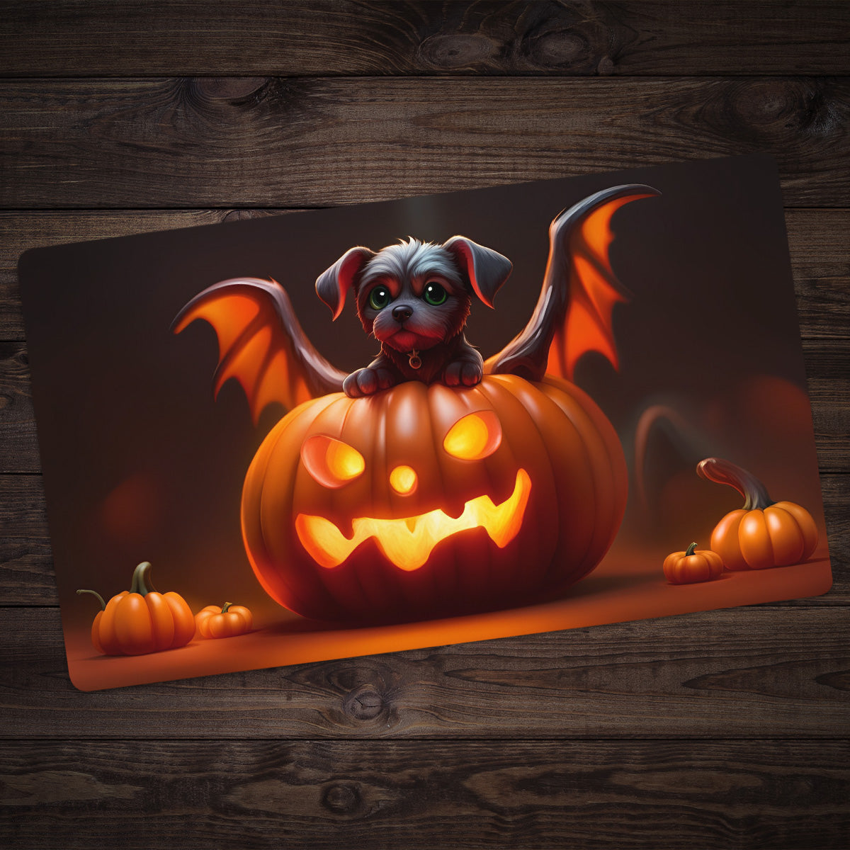 Oversized Playmat measures at 28” x 14” inches and is 1/16 of an inch thick. It’s made with a smooth cloth top and strong rubber backing.