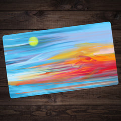 Standard Playmat measures at 24” x 14” inches and is 1/16 of an inch thick. It’s made with a smooth cloth top and strong rubber backing.