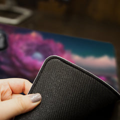 Need a new mousepad that features quality craftsmanship and creativity? Then you’ve definitely come to the right place. Our mousepads are made in-house with premium materials and unique artwork that give your battlestation the supreme look and feel that it deserves. The top is made from sleek polyester, which enables faster, more precise mouse movements. This enhanced speed and precision come in handy whether you’re working or gaming. On the bottom, there’s a strong anti-slip rubber backing that holds a nice, tight grip on your desk while you’re doing your thing. The action and traction this pad provides give you a better overall experience in completing daily tasks, deadlines, and missions of all kinds. And because we’ve added more sizing options to it, you no longer have to worry about running out of room at the worst moments either. The sizes are Classic, Large, and XL. The Classic mousepad has unstitched edges. However, the Large mousepad does include stitched edging, while the XL mousepad has both a stitched or unstitched edging option available. You can see the approximate measurements of all those sizes in the details below. We think you’ll be impressed…if you aren’t already!