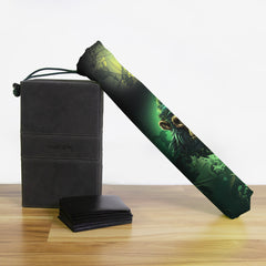 Keep your playmat in pristine condition wherever you go with one of our handcrafted playmat bags. This playmat bag is specifically designed to protect your playmat and can hold two standard sized mats at the same time (in case you need a backup or your friend forgets theirs). Each bag is made in-house and features a water-resistant coating along with a drawstring and carabiner clip for secure carrying. So you can take your game anywhere and in any weather.