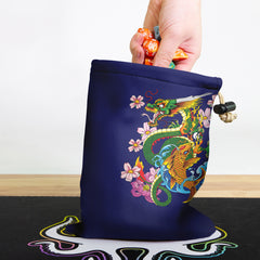 Always gaming on the go? Carry everything you need and more using our specially crafted dice bag. But this bag is designed to hold more than just dice. We make it so you can carry other essential accessories and gear with your dice, including deck boxes, life counters, extra sleeves, and pens. Quality is just as important as quantity, which is why our dice bags are crafted using premium material as well. Featuring a soft inner lining and microfiber on the inside and vibrant pre-designed artwork on the outside, our dice bag has an amazing look and feel to it!