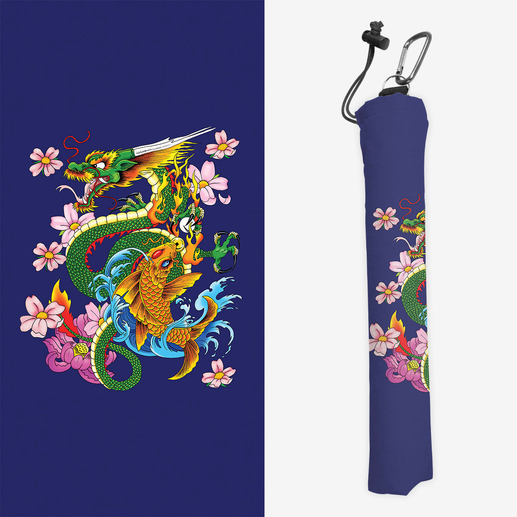 Playmat Bags are specifically designed to hold your mats in style. They are large enough to carry up to two mats. They are coated to be water resistant and include a strap with carabiner for carrying on your backpack. Our bags are hand made in house, and to order. A design that is vertical or patterned would be best for this type of product.