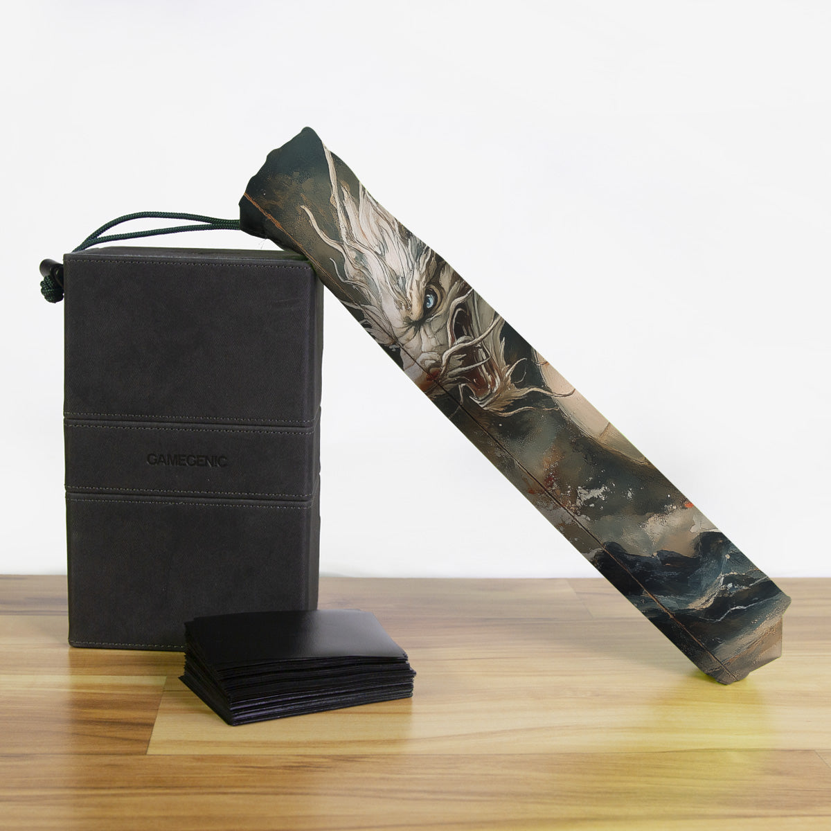 Keep your playmat in pristine condition wherever you go with one of our handcrafted playmat bags. This playmat bag is specifically designed to protect your playmat and can hold two standard sized mats at the same time (in case you need a backup or your friend forgets theirs). Each bag is made in-house and features a water-resistant coating along with a drawstring and carabiner clip for secure carrying. So you can take your game anywhere and in any weather.