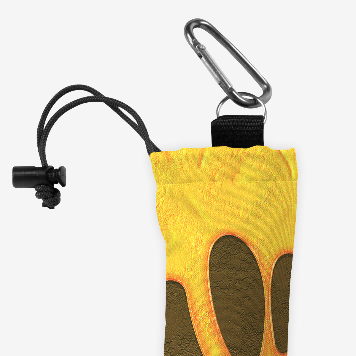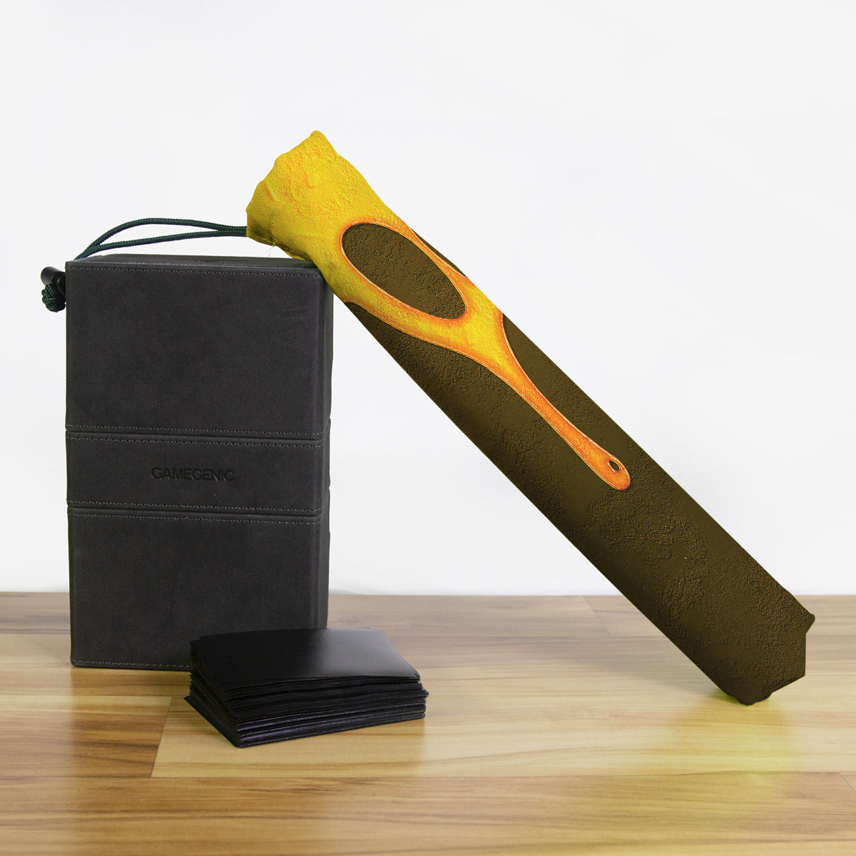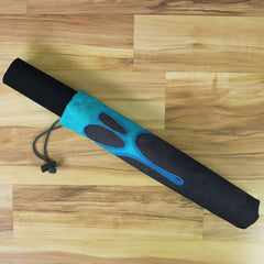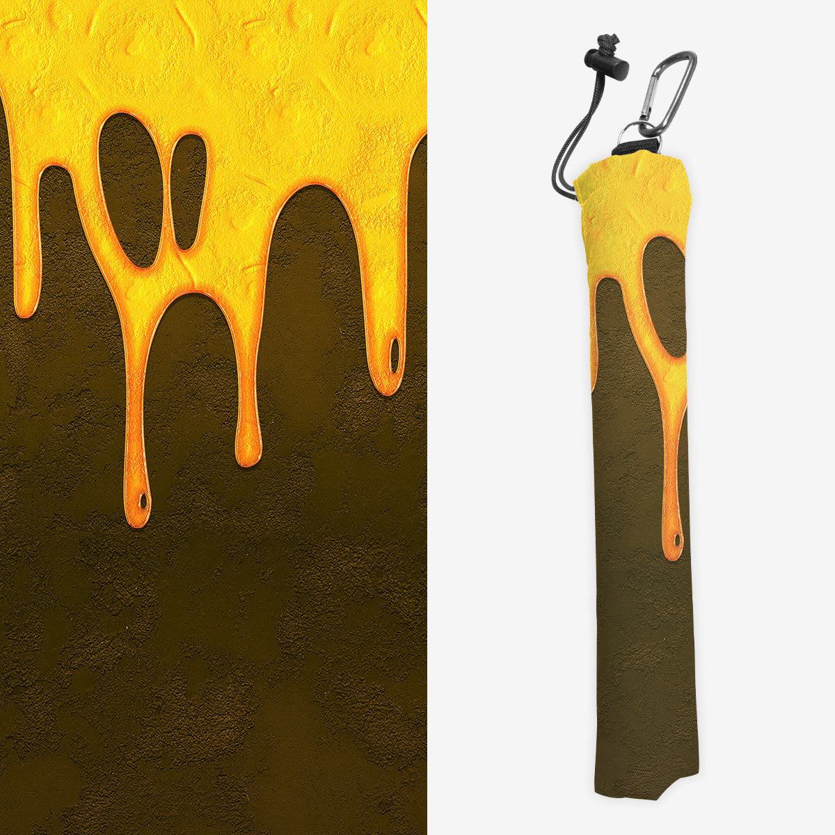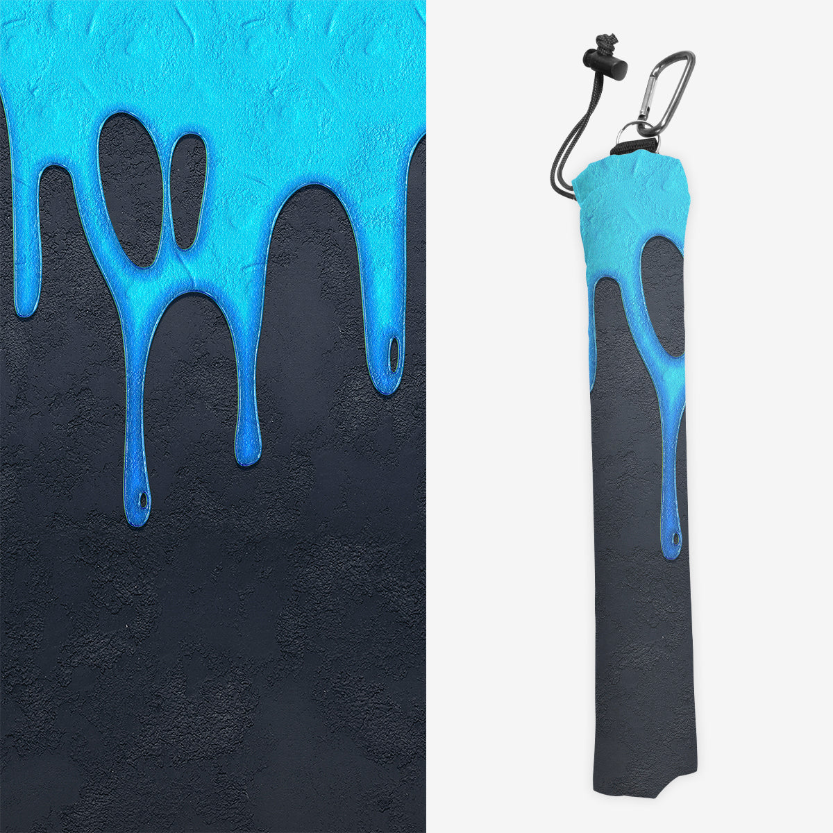 Playmat Bags are specifically designed to hold your mats in style. They are large enough to carry up to two mats. They are coated to be water resistant and include a strap with carabiner for carrying on your backpack. Our bags are hand made in house, and to order. A design that is vertical or patterned would be best for this type of product.