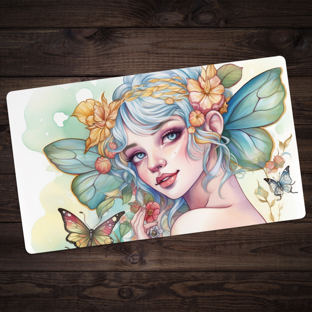 Standard Playmat measures at 24” x 14” inches and is 1/16 of an inch thick. It’s made with a smooth cloth top and strong rubber backing.