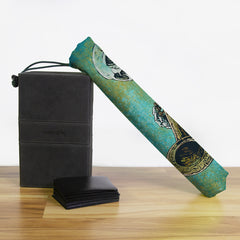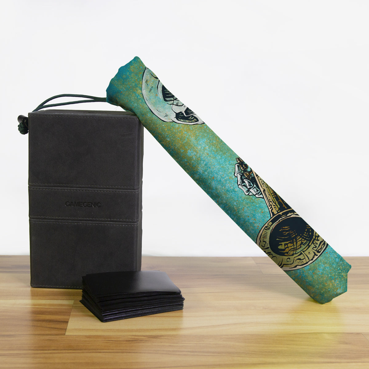 Keep your playmat in pristine condition wherever you go with one of our handcrafted playmat bags. This playmat bag is specifically designed to protect your playmat and can hold two standard sized mats at the same time (in case you need a backup or your friend forgets theirs). Each bag is made in-house and features a water-resistant coating along with a drawstring and carabiner clip for secure carrying. So you can take your game anywhere and in any weather.