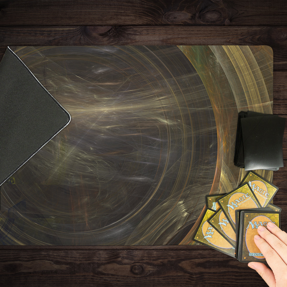 Standard Playmat measures at 24” x 14” inches and is 1/16 of an inch thick. It’s made with a smooth cloth top and strong rubber backing.