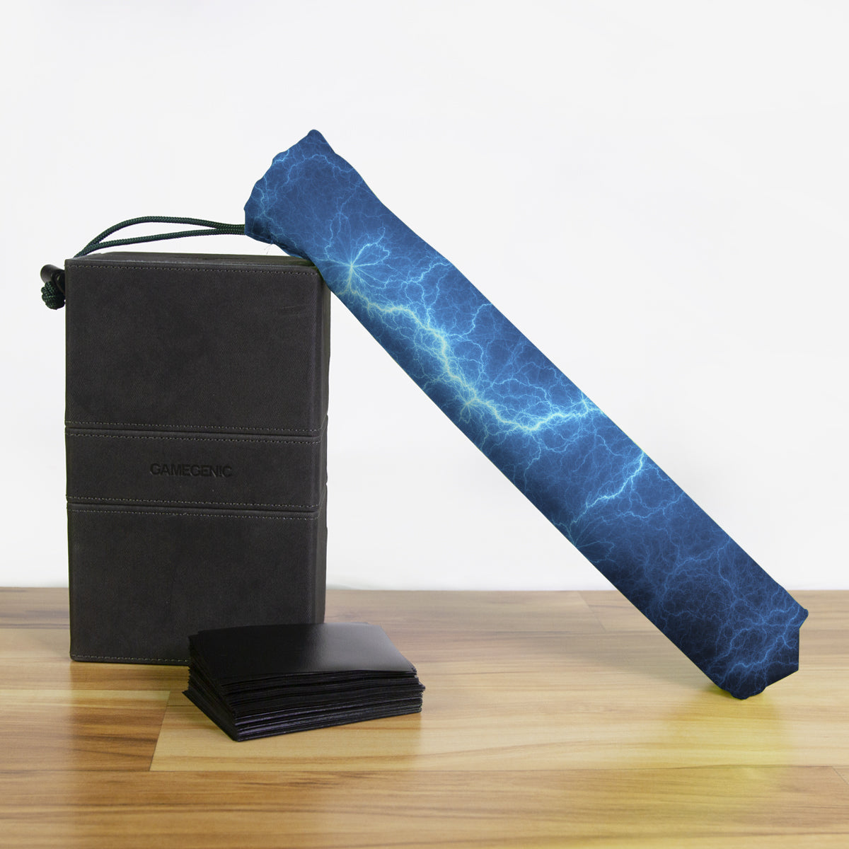 Keep your playmat in pristine condition wherever you go with one of our handcrafted playmat bags. This playmat bag is specifically designed to protect your playmat and can hold two standard sized mats at the same time (in case you need a backup or your friend forgets theirs). Each bag is made in-house and features a water-resistant coating along with a drawstring and carabiner clip for secure carrying. So you can take your game anywhere and in any weather.