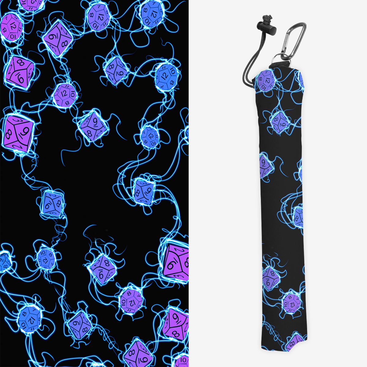 Playmat Bags are specifically designed to hold your mats in style. They are large enough to carry up to two mats. They are coated to be water resistant and include a strap with carabiner for carrying on your backpack. Our bags are hand made in house, and to order. A design that is vertical or patterned would be best for this type of product.