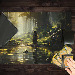 Oversized Playmat measures at 28” x 14” inches and is 1/16 of an inch thick. It’s made with a smooth cloth top and strong rubber backing.