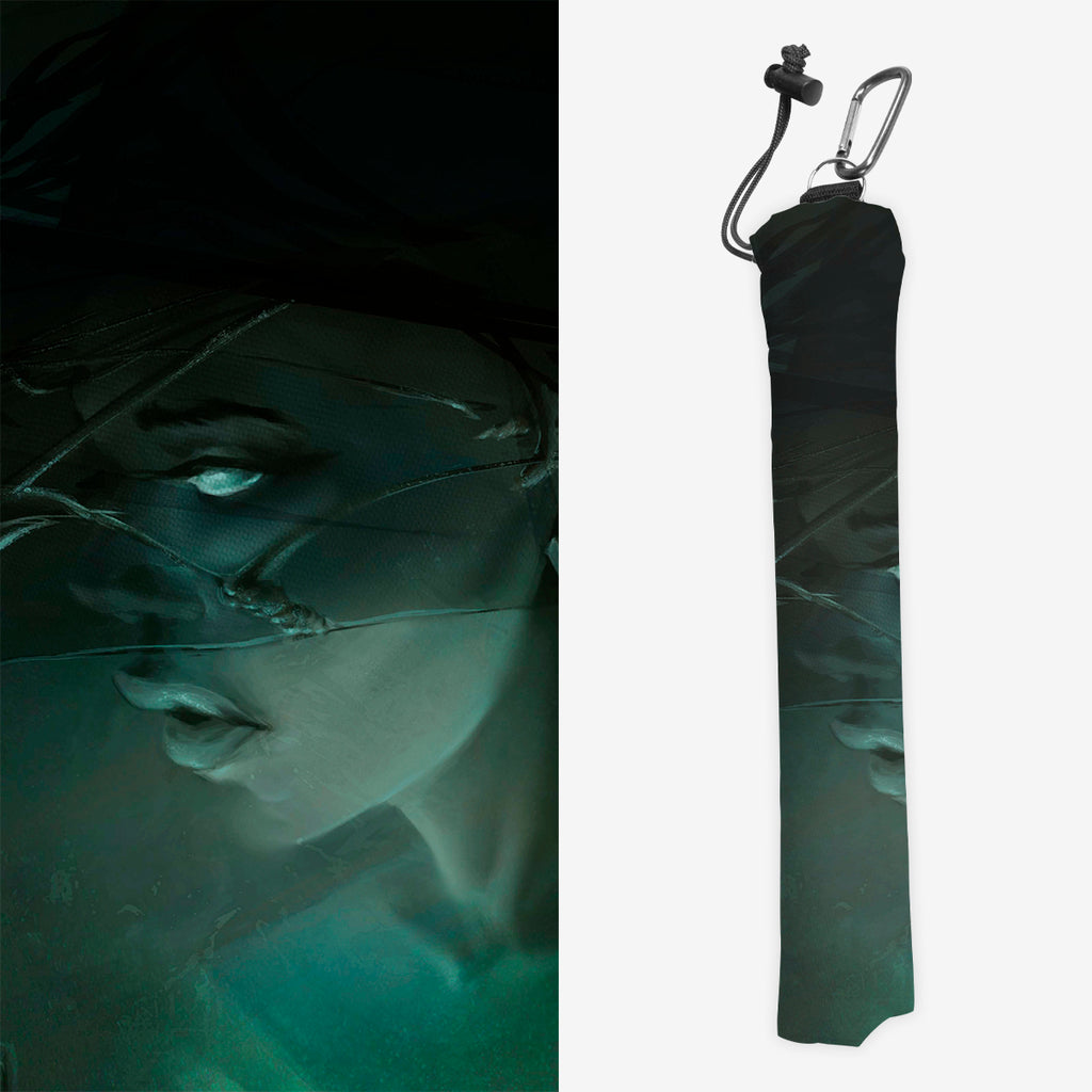 Playmat Bags are specifically designed to hold your mats in style. They are large enough to carry up to two mats. They are coated to be water resistant and include a strap with carabiner for carrying on your backpack. Our bags are hand made in house, and to order. A design that is vertical or patterned would be best for this type of product.
