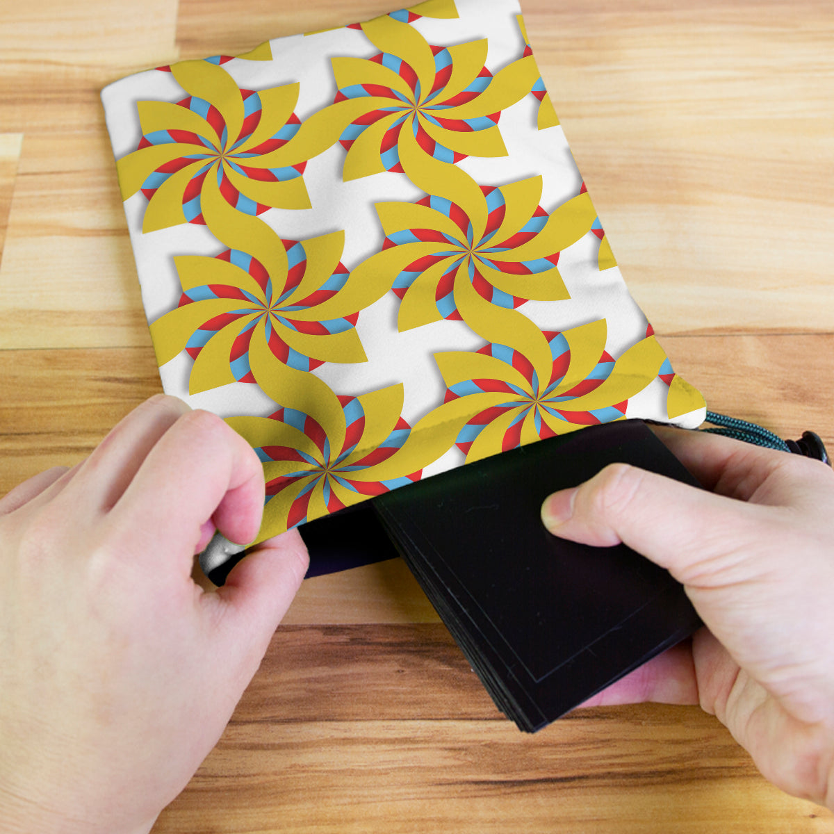 Always gaming on the go? Carry everything you need and more using our specially crafted dice bag. But this bag is designed to hold more than just dice. We make it so you can carry other essential accessories and gear with your dice, including deck boxes, life counters, extra sleeves, and pens. Quality is just as important as quantity, which is why our dice bags are crafted using premium material as well. Featuring a soft inner lining and microfiber on the inside and vibrant pre-designed artwork on the outside, our dice bag has an amazing look and feel to it!