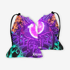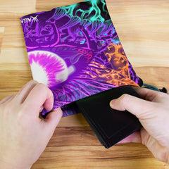 Always gaming on the go? Carry everything you need and more using our specially crafted dice bag. But this bag is designed to hold more than just dice. We make it so you can carry other essential accessories and gear with your dice, including deck boxes, life counters, extra sleeves, and pens. Quality is just as important as quantity, which is why our dice bags are crafted using premium material as well. Featuring a soft inner lining and microfiber on the inside and vibrant pre-designed artwork on the outside, our dice bag has an amazing look and feel to it!