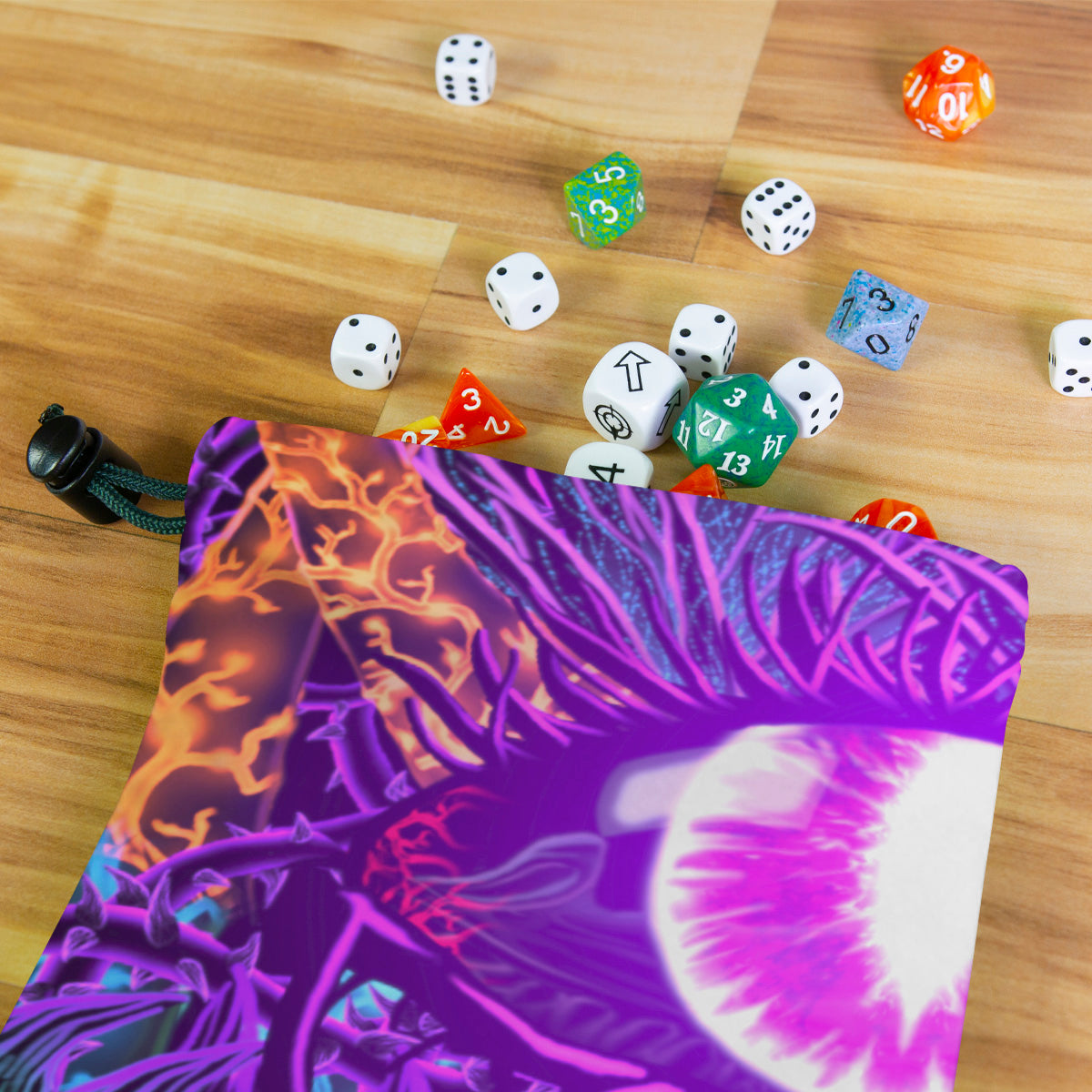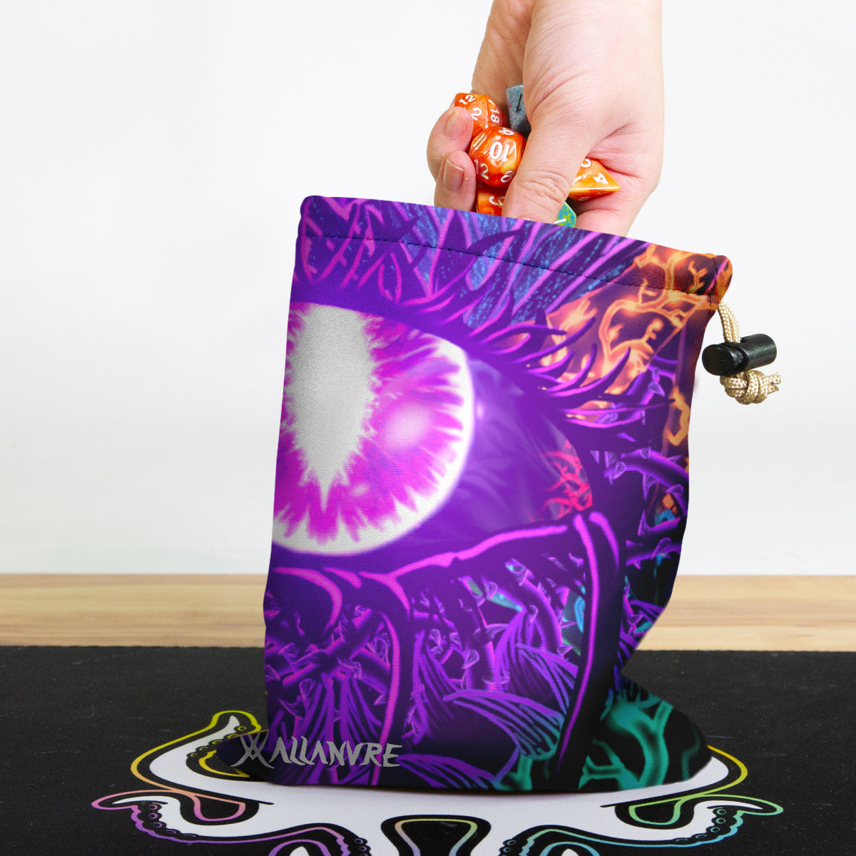AllanvreAlways gaming on the go? Carry everything you need and more using our specially crafted dice bag. But this bag is designed to hold more than just dice. We make it so you can carry other essential accessories and gear with your dice, including deck boxes, life counters, extra sleeves, and pens. Quality is just as important as quantity, which is why our dice bags are crafted using premium material as well. Featuring a soft inner lining and microfiber on the inside and vibrant pre-designed artwork on the outside, our dice bag has an amazing look and feel to it!