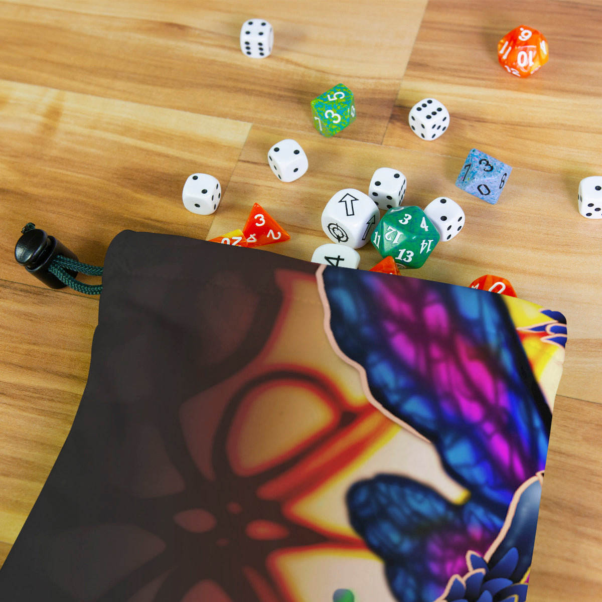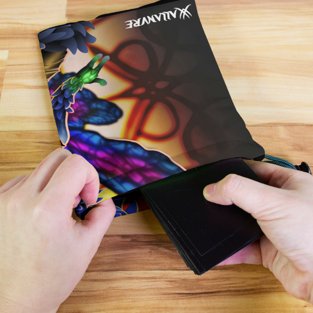 AllanvreAlways gaming on the go? Carry everything you need and more using our specially crafted dice bag. But this bag is designed to hold more than just dice. We make it so you can carry other essential accessories and gear with your dice, including deck boxes, life counters, extra sleeves, and pens. Quality is just as important as quantity, which is why our dice bags are crafted using premium material as well. Featuring a soft inner lining and microfiber on the inside and vibrant pre-designed artwork on the outside, our dice bag has an amazing look and feel to it!
