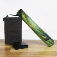 Keep your playmat in pristine condition wherever you go with one of our handcrafted playmat bags. This playmat bag is specifically designed to protect your playmat and can hold two standard sized mats at the same time (in case you need a backup or your friend forgets theirs). Each bag is made in-house and features a water-resistant coating along with a drawstring and carabiner clip for secure carrying. So you can take your game anywhere and in any weather.